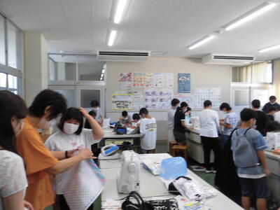 今日は、6年生がミシンを使ってリュックを製作する日です。