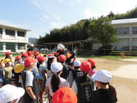 3年生の子供たちが、梨園の見学に出かけていきます。