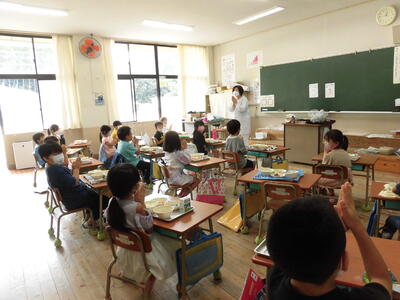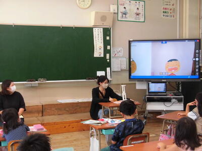 1年生は、おむすびころりんの学習、2年生は、想像した機械について説明する準備をしていました。
