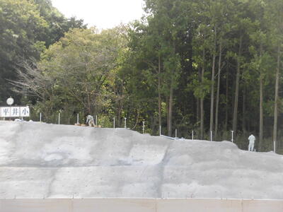 三段ガケの工事は、フェンスの取り付けに入っています。