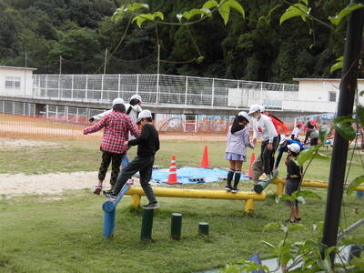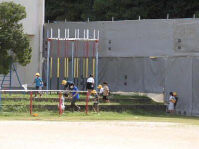 まだまだ暑いので、給水や休憩をしっかりとってもらっています。