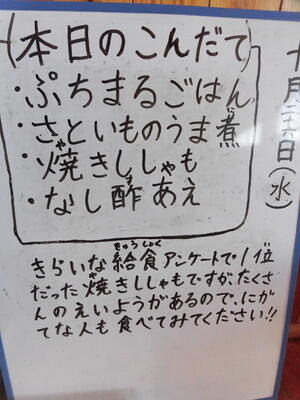 「みんなが、『今日の給食は、何?』と聞いてくるので、目立つところに書いておくと、みんなが見てくれると思ったからです」とのこと。