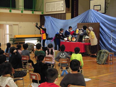 本格的な舞台の仕掛けと、みなさんの巧みな話術で、子供たちはお話の世界に引き込まれていました。