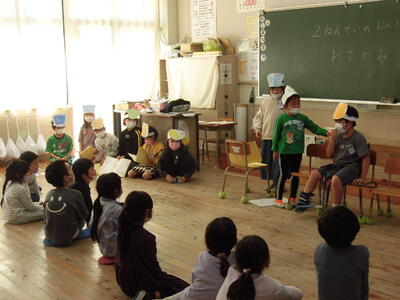 3時間目が終わりに近づく頃、6年生が保健室の方向へ、どやどやと廊下を歩いています。