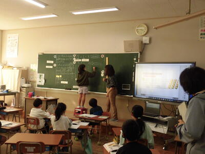 2年生は、タブレットでドリル学習に取り組んでいました。