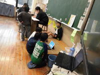 給食委員会では、資料を読みながら、集会に向けてクイズを考えていました。