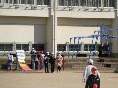 1年生と2年生が、持久走大会のコースを見に行きました。