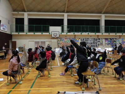 体育館では、じゃんけん列車で楽しそうに遊んでいました。