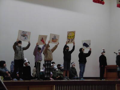 子供たちは、北風の中、元気に歩いてきてくれました。