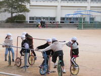 運動場を見てみると、1年生が長縄を跳んでいるところでした。