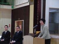 まず、転出される先生方には、職員室で、お別れのあいさつをしていただきました。