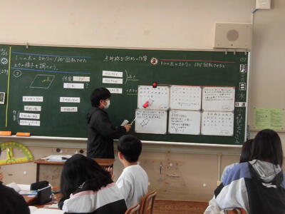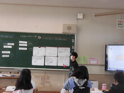 今日の算数の授業では、点対称の問題をグループで考えました。