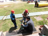 大雨洪水警報発令を想定して、引き渡し訓練を行いました。