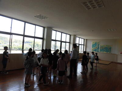 3年生は、社会。土地の使われ方について、景色を見ながら調べていました。