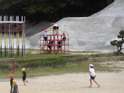 まだ水たまりはありますが、子供たちは、それぞれに話し合って遊びを決めて運動場へ!