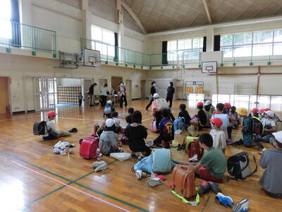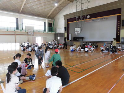 今日は、掃除をせずに、「縦割り班」のお見知り会をしました。