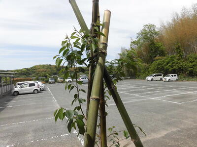 葉っぱが1枚もなかった桜の苗木が、しっかり根付いて、葉を茂らせています。