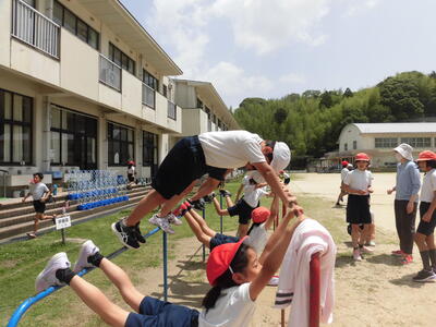 運動会のダンスは、低・中・高学年に分けて表現します。