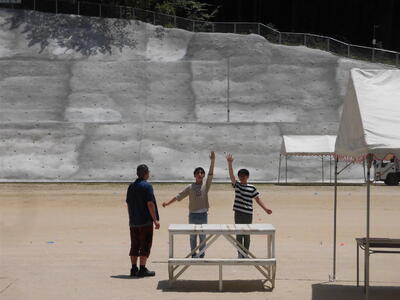 全体練習で疲れたと言いながら、子供たちは元気です。
