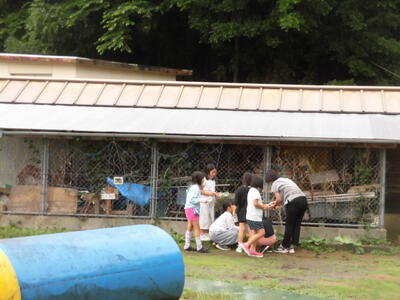 1年生、2年生は、大喜びでお弁当を食べていました。