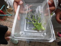 何だろうと様子を見に行くと、青虫のエサになるキャベツの葉を、土本先生と一緒に取りに行くところでした。