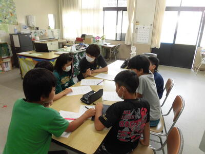 昼休み、健康委員の子供たちが、話し合いをしていました。