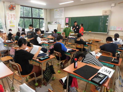6年生が、書写の時間に「湖」という漢字を書きます。