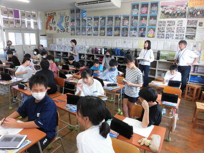 今日は、1年生がタブロットでロイロノートを使って写真を活用する授業がありました。