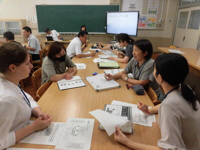 放課後は、先生たちみんなで「もっといい授業にするために」研究会を行いました。