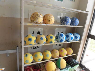 ボールの片付けがよくなるように、種類分けして整理しました。