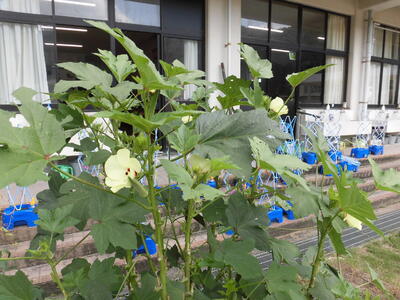 校長室前に飾った花の写真を撮っていたら、1年生の女の子が「あ、キレイ!」と言ってくれました。
