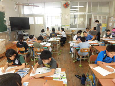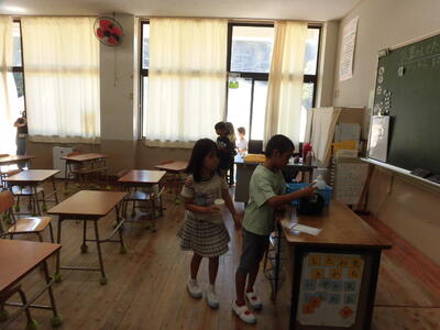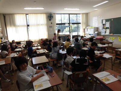 5年生は、道案内の仕方、3年生はアルファベットを学習していました。