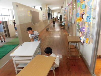 喜びのあまりナップサックをしょって廊下をルンルン歩いている子もいました。