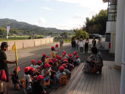 秋晴れのいい天気の中、今日は、3年生が「山川なし園」に体験学習に出かけます。