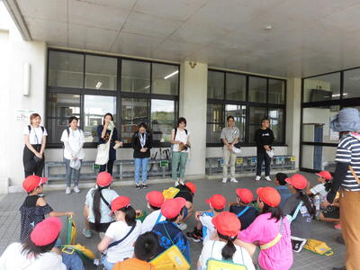 柴尾団長はじめ地域の消防団の皆さん15名が、3・4年生の学習のために来てくださいました。