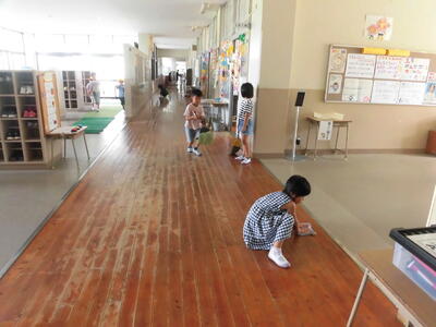 朝から、児童昇降口付近に「人だかり」ができていました。