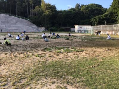 おかげさまで、運動場や体育館周り、学校坂の雑草がずいぶんすっきりとし、27日(火)から始まる前期後半のスタートを安心して迎えることができそうです。お世話になりました!