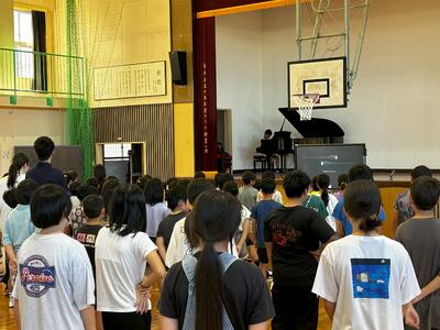 その後、校長先生からのお話、生徒指導担当の先生から安全な夏休みのくらしについてのお話、保健担当の先生から健康的な夏休みのくらしについてのお話がありました。安心安全な、楽しい思い出が残る夏休みにしてほしいと思います。