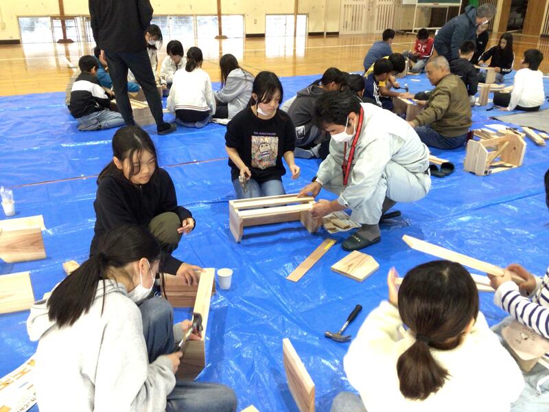 午後は、県産の板を使って、本箱をつくりました。お力を貸していただいたたくさんの方々、ありがとうございました!