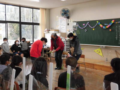 茅畑さんと宮本さんを迎えして、稲作体験への感謝の会を開きました。