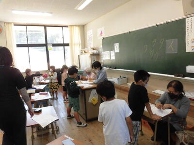 1年生と4年生の時間が重なったので、行列ができてしまいました。