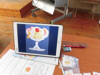What do you want? とお互いに尋ねながら、タブレット上でパフェを作っていきます。