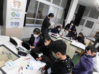 6年生は、プログラミングで人感センサーを作動させ、防犯ライトを点滅させる問題に取り組みました。