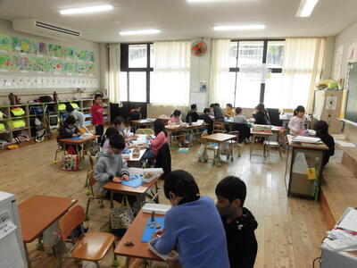 6年生は、今学年で学習した漢字全問正解を目指してテストに取り組みました。