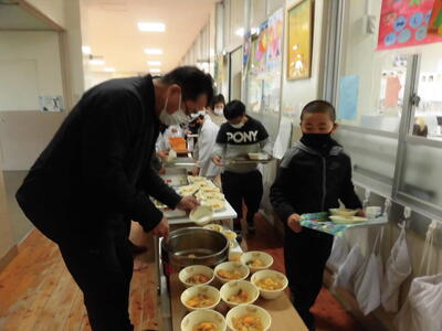 給食準備の様子を見て回っていると、「校長先生のホームページ、見てますよ!」と、声をかけてくれる子がいました。