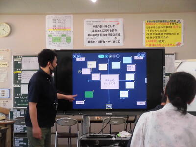 ICT支援員の牧野さんに来ていただき、主にロイロノートで協働学習を効果的に行う方法などを学びました。