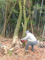 ロープのはしごのかかっていた木は、根元がボロボロになってしまっています。