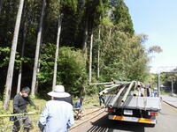 岩本橋付近の関川にこいのぼり等を取り付けるために、まずは竹切りからスタートです。
