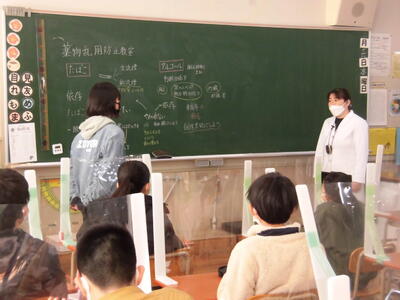 学校薬剤師の高田良子先生をお迎えして、「薬物乱用防止教室」を行いました。