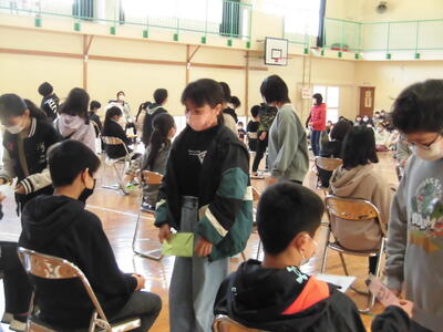5年生は、「委員長のお仕事、お疲れ様でした」など、言葉を添えて渡していました。